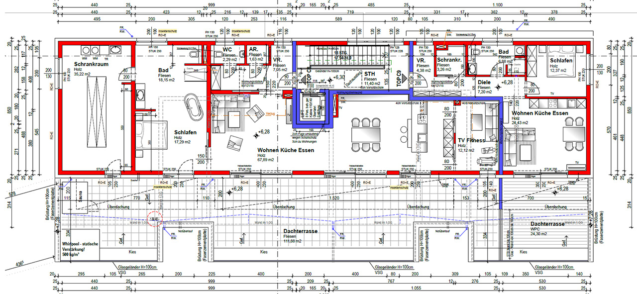 Monatlich beträgt der Hauptmietzins € 1.635,00, das Betriebskostenakonto € 387,60, das Heizkostenakonto € 225,63, die Miete der beiden Tiefgaragenplätze € 200,00 und die Umsatzsteuer € 287,39. Ab sofort steht diese herrliche Loftwohnung für Sie oder Ihre Mitarbeiter zum Wohnen sowie für Ihr Unternehmen zu Repräsentationszwecken ausgezeichnet zur Verfügung.